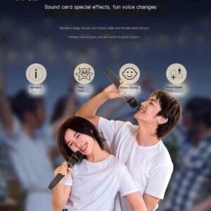 • Wireless Karaoke: Comes with two wireless microphones — perfect for duets, speeches, or solo acts.