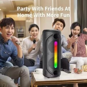 • Multi-Input Playback: Supports Bluetooth, USB, TF card, FM radio, AUX, and MIC input for flexible connectivity.